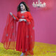 Dip your style in the tranquil waves of our Bright Blue Bandhej Suit Set! The ombre blue hues evoke the calm of the ocean, while the Bandhej pattern adds a touch of tradition to the overall modern look. The gotta work sparkles like sunlit ripples, and the matching dupatta ties it all together with elegance.