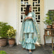 Harmonize into your classical roots with this Vishakha Suit Set. With soothing hues and flowy silhouettes, this suit set is wardrobe essential! It features three-fourth sleeves and fine gota lace details.
